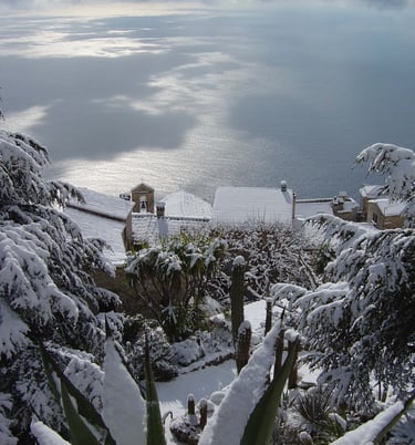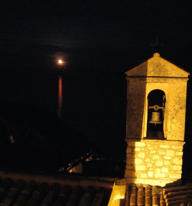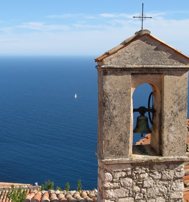 Arroccato sopra la meravigliosa Costa Azzurra, il panorama che si gode dal villaggio di Eze è uno spettacolo da vedere. L'infinito orizzonte blu del Mediterraneo si estende sotto il cielo limpido, incorniciato dall'elegante sagoma di un'antica campana di pietra. L'aria è pervasa dalla tranquillità delle alture e dai dolci rintocchi che sembrano cantare in armonia con il mormorio delle onde. È un tableau vivant che invita alla contemplazione e arricchisce l'esperienza di ogni fortunato visitatore di questo pittoresco villaggio collinare.